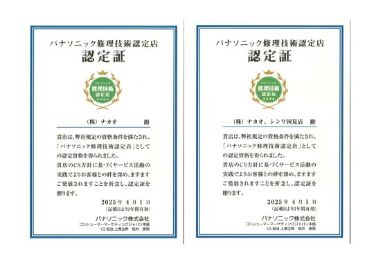 当店は「パナソニック修理技術認定店」になります。