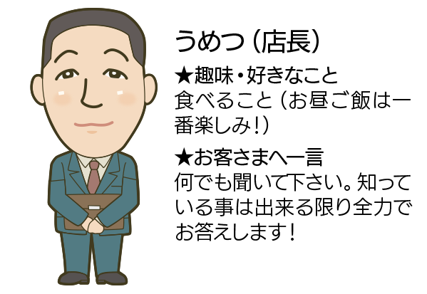 月〜金/9:00~19:00  土/8:30〜18:00日・祝/9:00〜18:00